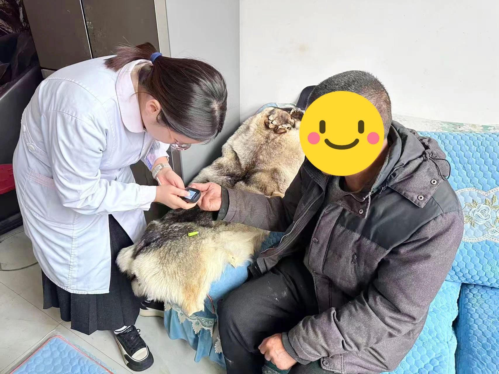 护理人员首先询问了患者近期身体状况,了解到任大叔近日血糖波动较大,护士王杰为其测量了血糖,同时就血糖监测的重要性给任大叔作了讲解,并指导患者和家属如何控制血糖。