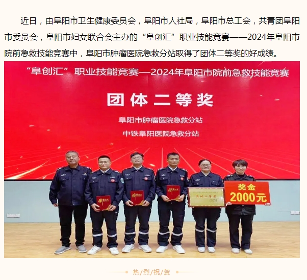 祝贺!阜阳市肿瘤医院急救分站在“阜创汇”职业技能竞赛中荣获佳绩!