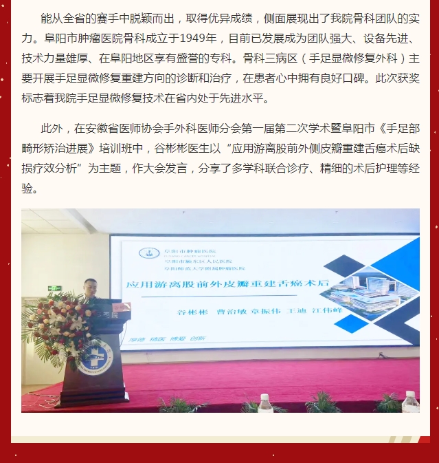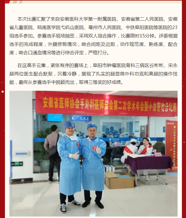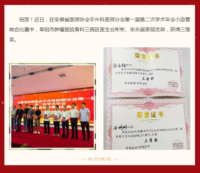 祝贺!在这项省级比赛中,阜阳市肿瘤医院骨科谷彬彬、宋永超医生斩获佳绩!