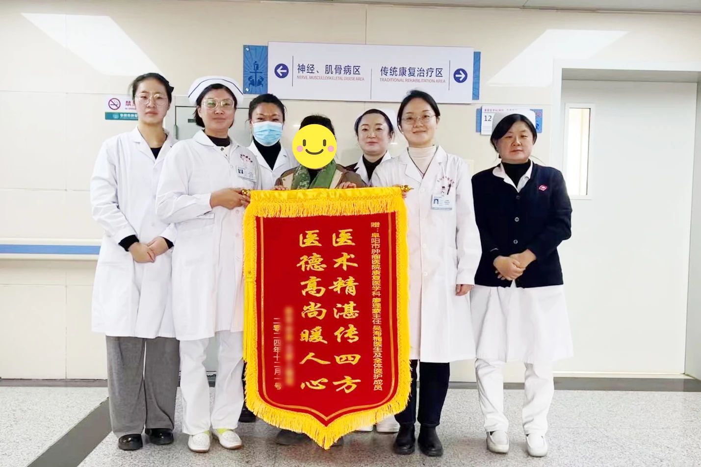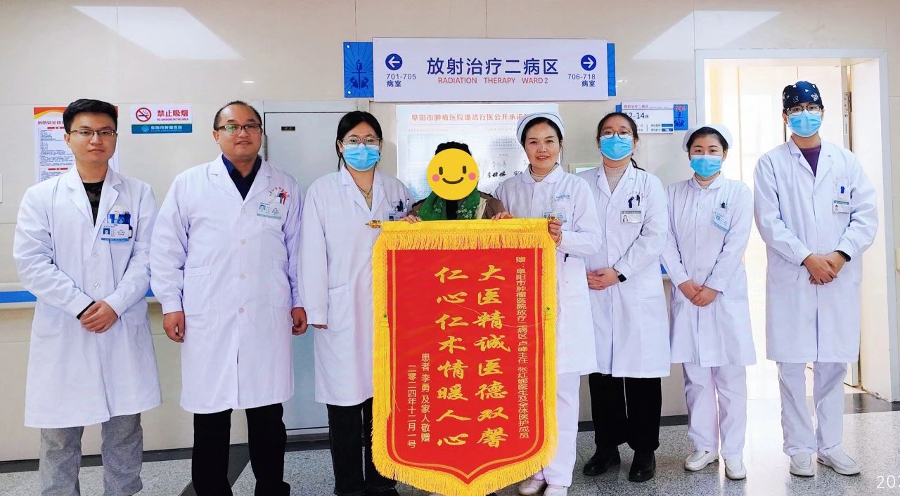 为了感谢放射治疗二病区医护人员的积极帮助,以及康复医学科团队专业的治疗,李先生同家属一起,为两个科室送上了红彤彤的锦旗。