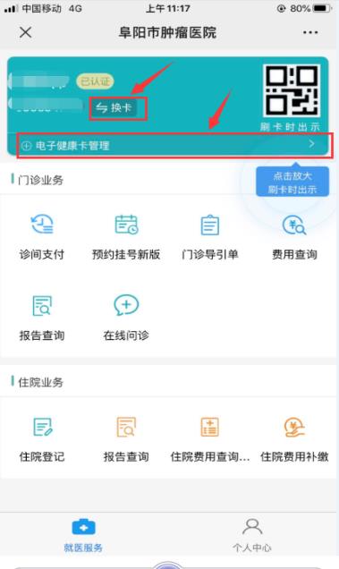 七、患者如有多张就诊卡,或者要使用家人的就诊卡,选择换卡或者就诊卡管理
