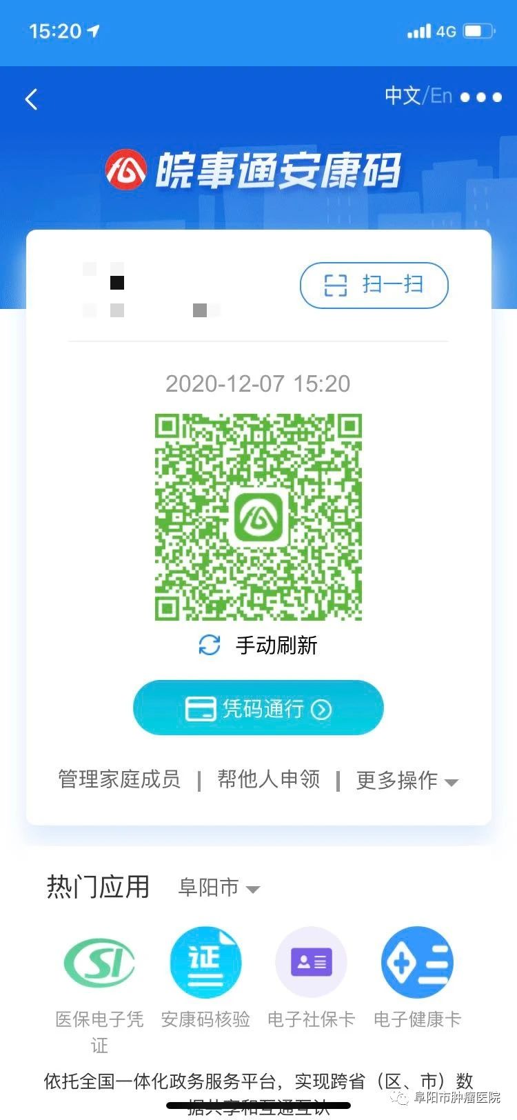 为了全面落实联防联控措施,扎实做好疫情防控工作。阜阳市肿瘤医院已启用“安康码”进行挂号就诊,患者通过出示“安康码”就可以实现自助建卡、就医、交费、医技检查等一系列功能,真正实现了“一码就医”。有效简化了就诊流程,切实方便群众就医。